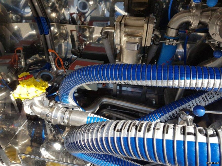 9. Pomiędzy 1. a 2. sekcją zastosowany zostanie „By-Pass” o rozmiarze DN80, sterowany zaworem DN80 z prawej strony cysterny. Jego zadaniem jest dociążenie siodła w trakcie jazdy.